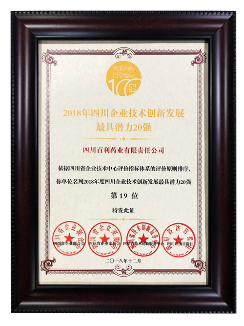 2018四川企業(yè)技術(shù)創(chuàng)新發(fā)展最具潛力20強(qiáng)