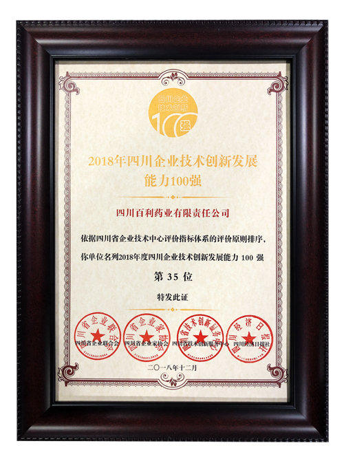 2018四川企業(yè)技術(shù)創(chuàng)新發(fā)展能力100強(qiáng)