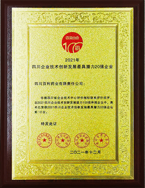 2020四川企業(yè)技術(shù)創(chuàng)新發(fā)展最具潛力20強(qiáng)