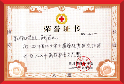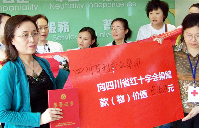 2008年5月,百利藥業(yè)(集團(tuán))迅速向?yàn)?zāi)區(qū)捐贈(zèng)了緊缺急救藥品和現(xiàn)金。公司員工也自發(fā)組織捐款、捐物活動(dòng),并奔赴什邡、綿竹、廣元等第一線協(xié)助救災(zāi)搶險(xiǎn)工作,以實(shí)際行動(dòng)向?yàn)?zāi)區(qū)人民表達(dá)自己一衣帶水的手足之情。